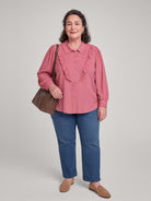 This blouse combines a feminine ruffled collar with a smooth, breathable cotton blend that feels light against your skin. Its gentle texture and airy fit bring calm confidence to your everyday look, keeping you comfortable whether you’re at home or out with friends.