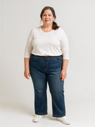 The high elastic waist provides a secure yet comfortable hold that flatters your tummy and never digs in. With their relaxed flare leg, they create a balanced silhouette that feels both timeless and freeing — perfect for your everyday rhythm.
