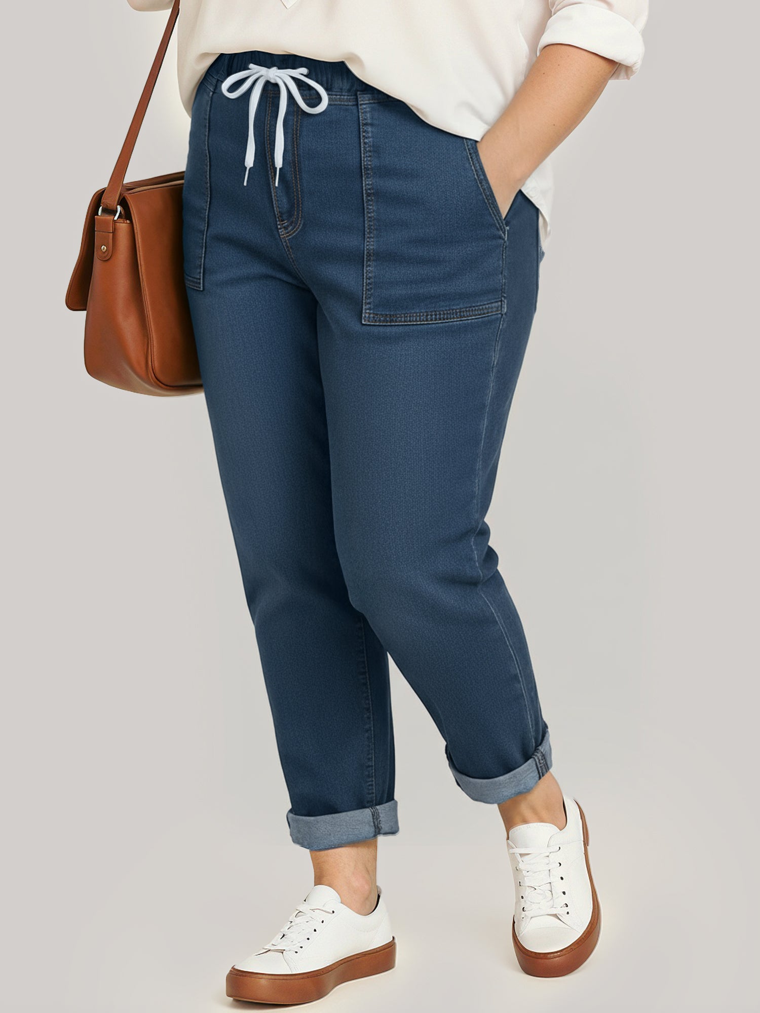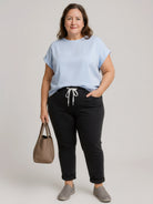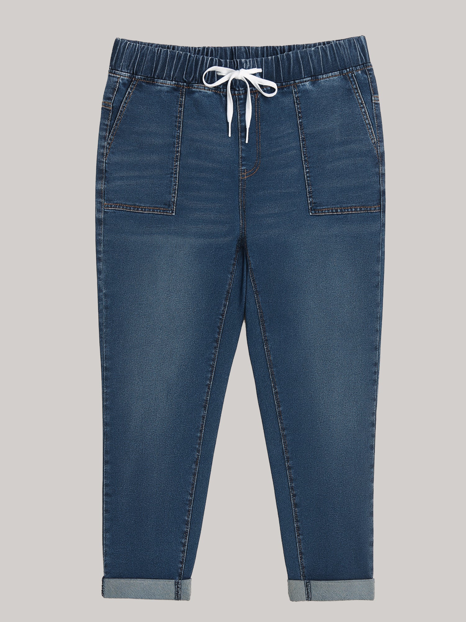 These pull on jeans bring together the ease of a drawstring waist with the polish of classic dark denim. The high stretch fabric moves with you, never against you, giving that gentle, supportive feel that lets you breathe freely through your day.