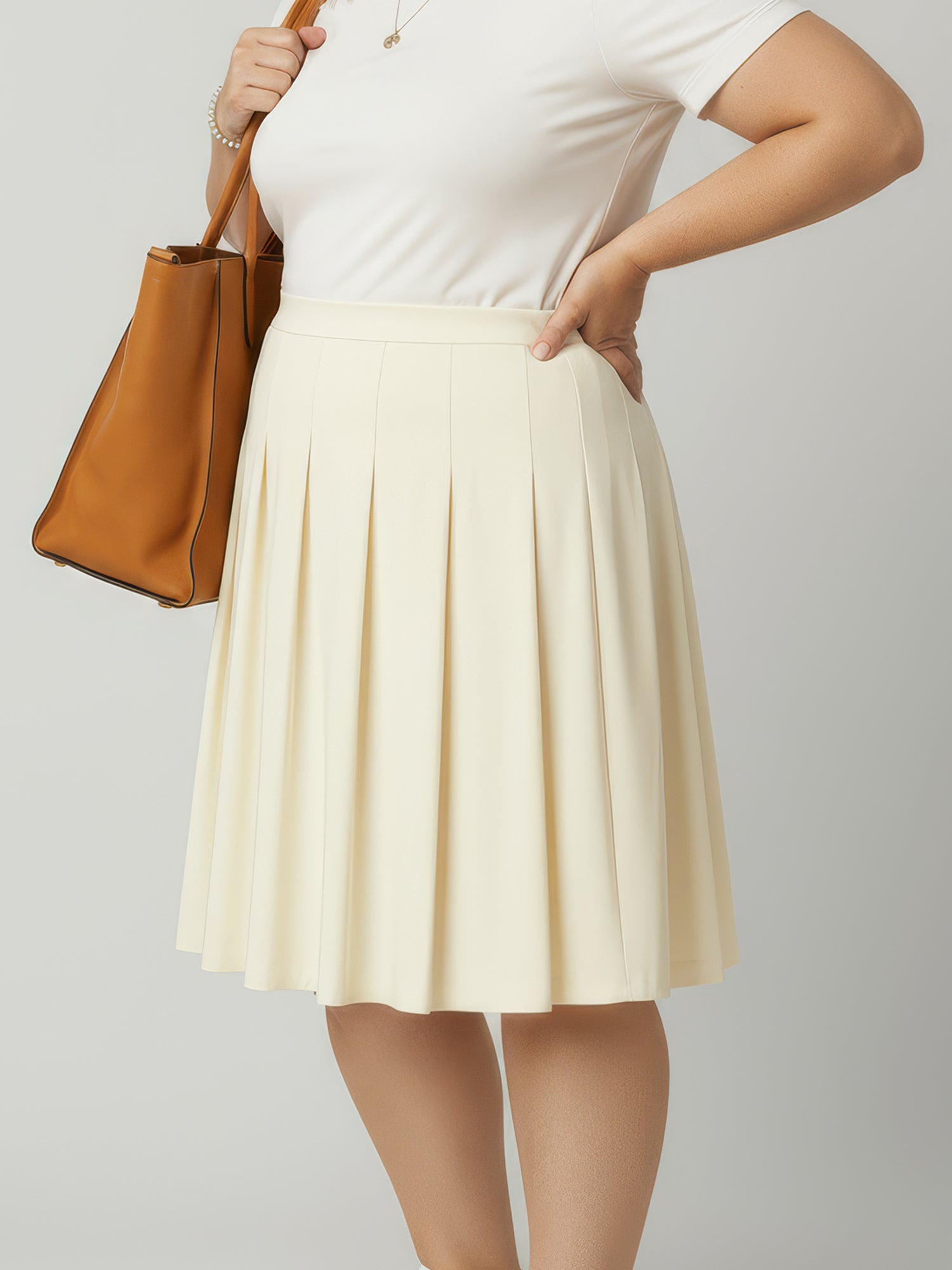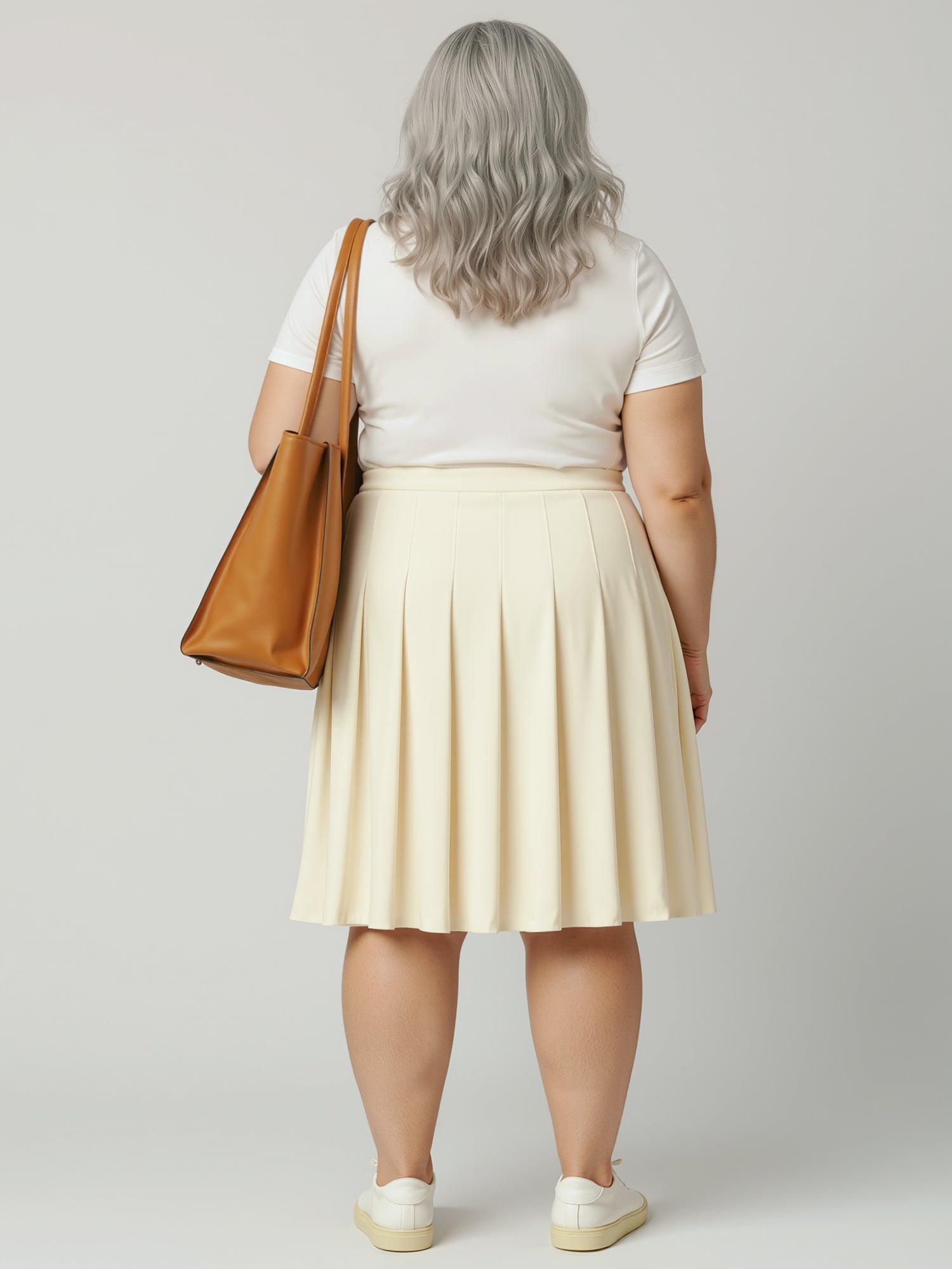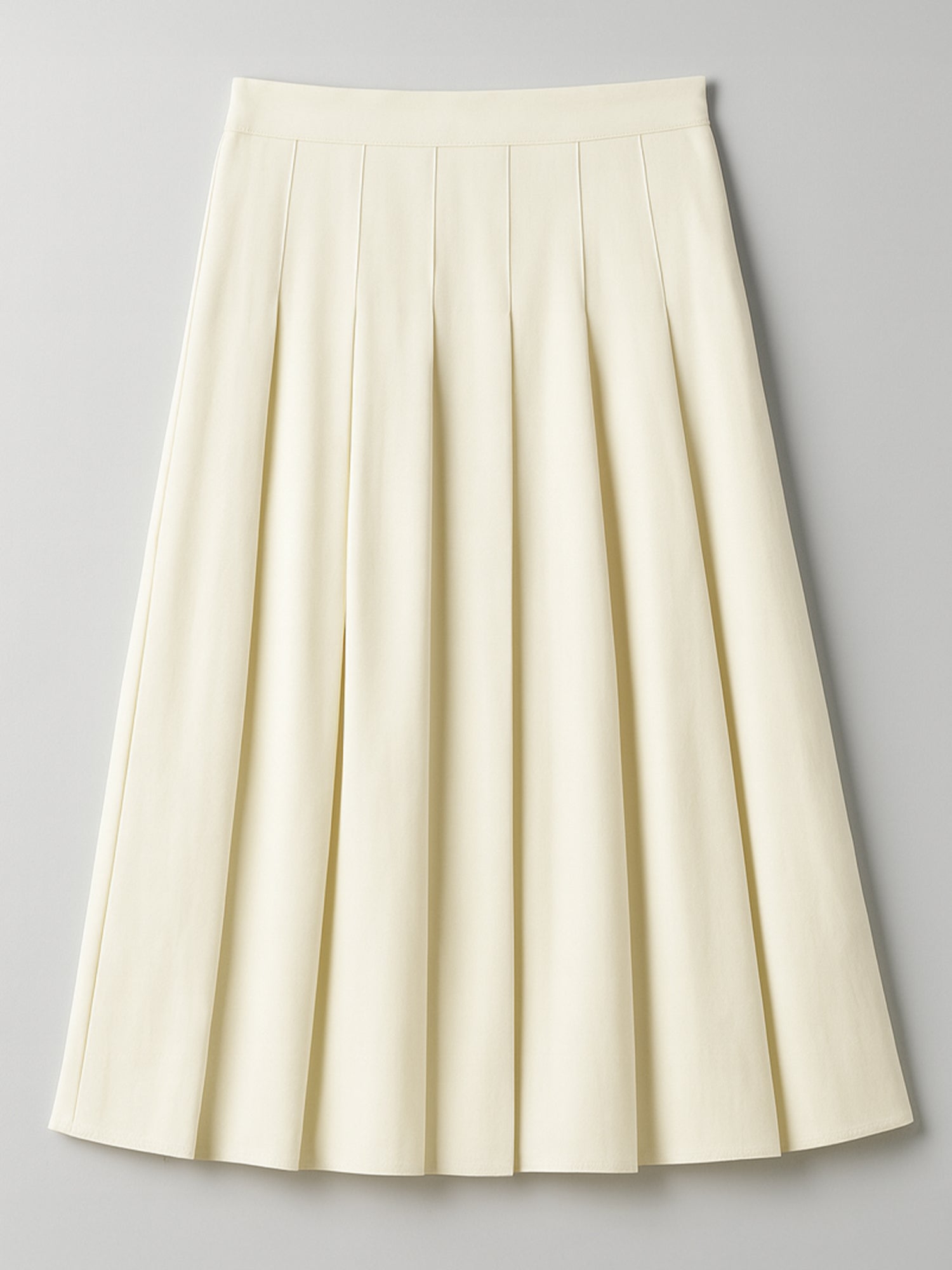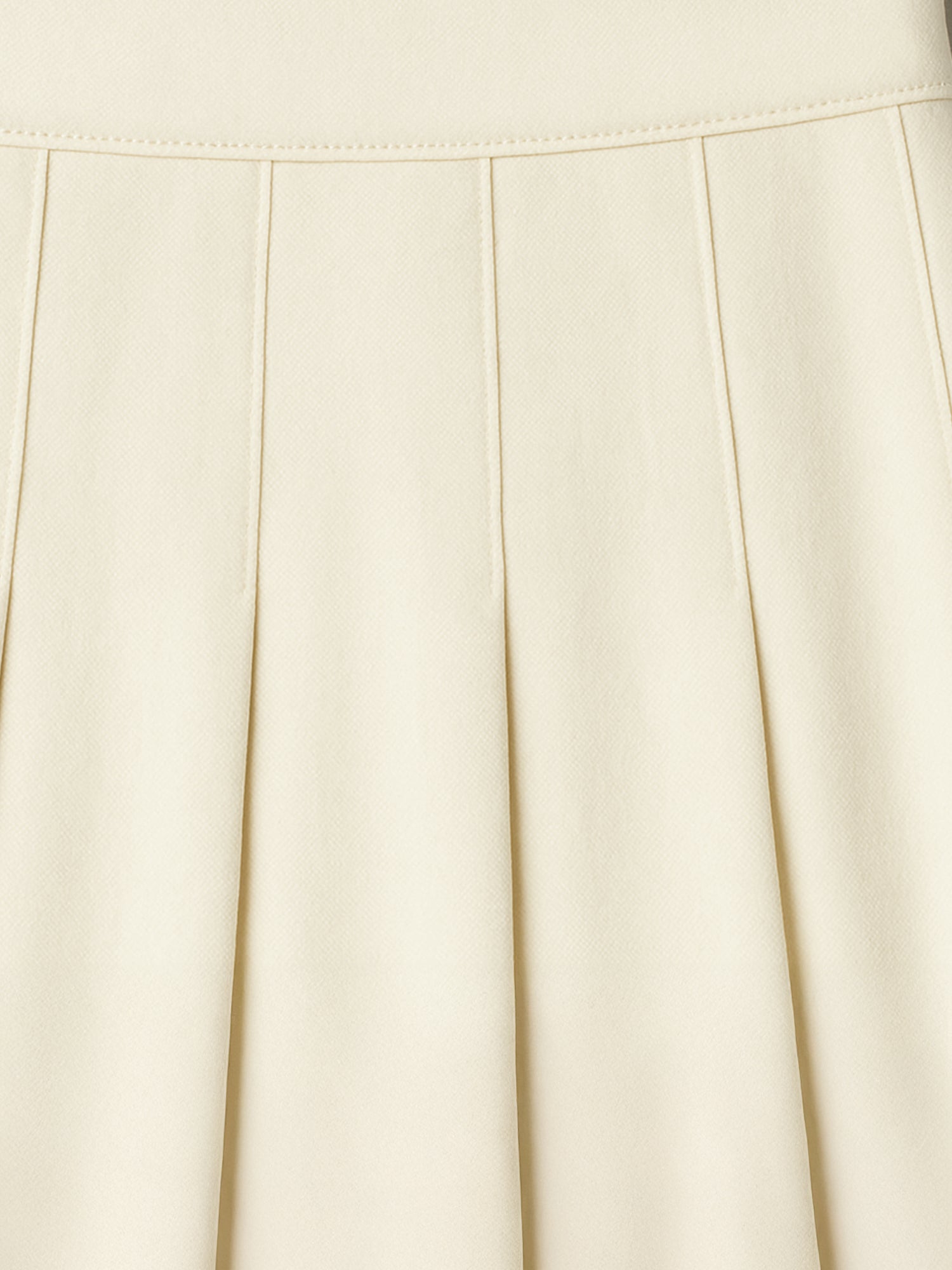 Softly structured and gently flowing, this pleated skirt moves with you while keeping its graceful shape. The fabric feels smooth and refined, with a hint of stretch that lets you sit, walk, and move comfortably all day. It’s the kind of skirt that makes you feel quietly elegant without trying too hard.