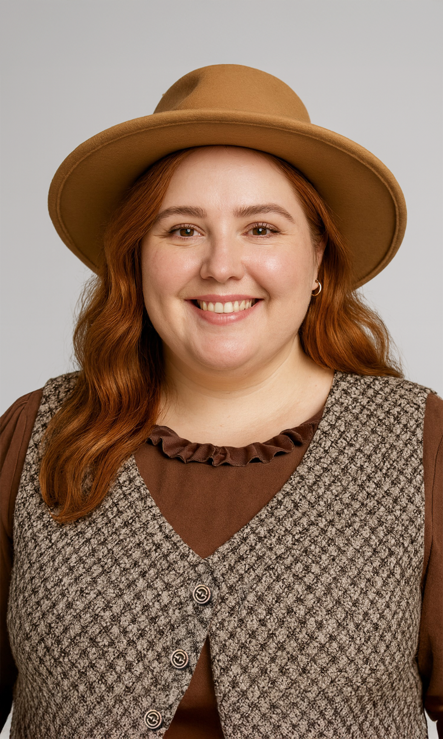 The tweed vest adds structure and a classic layered look that flatters your shape while keeping you comfortable.