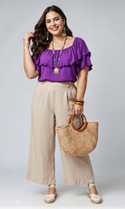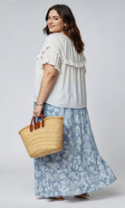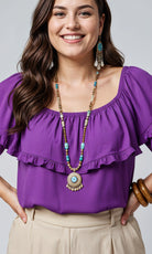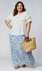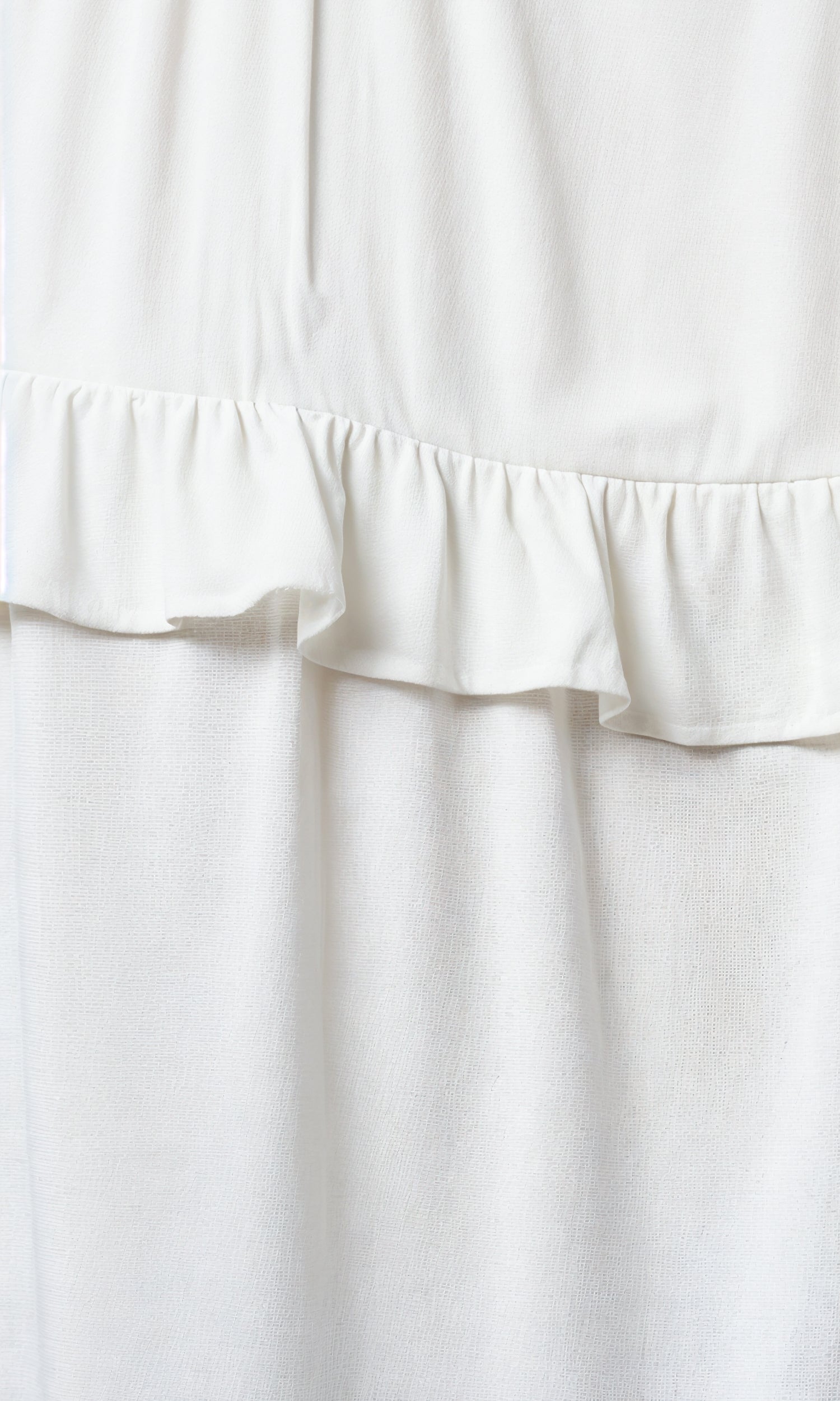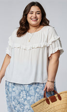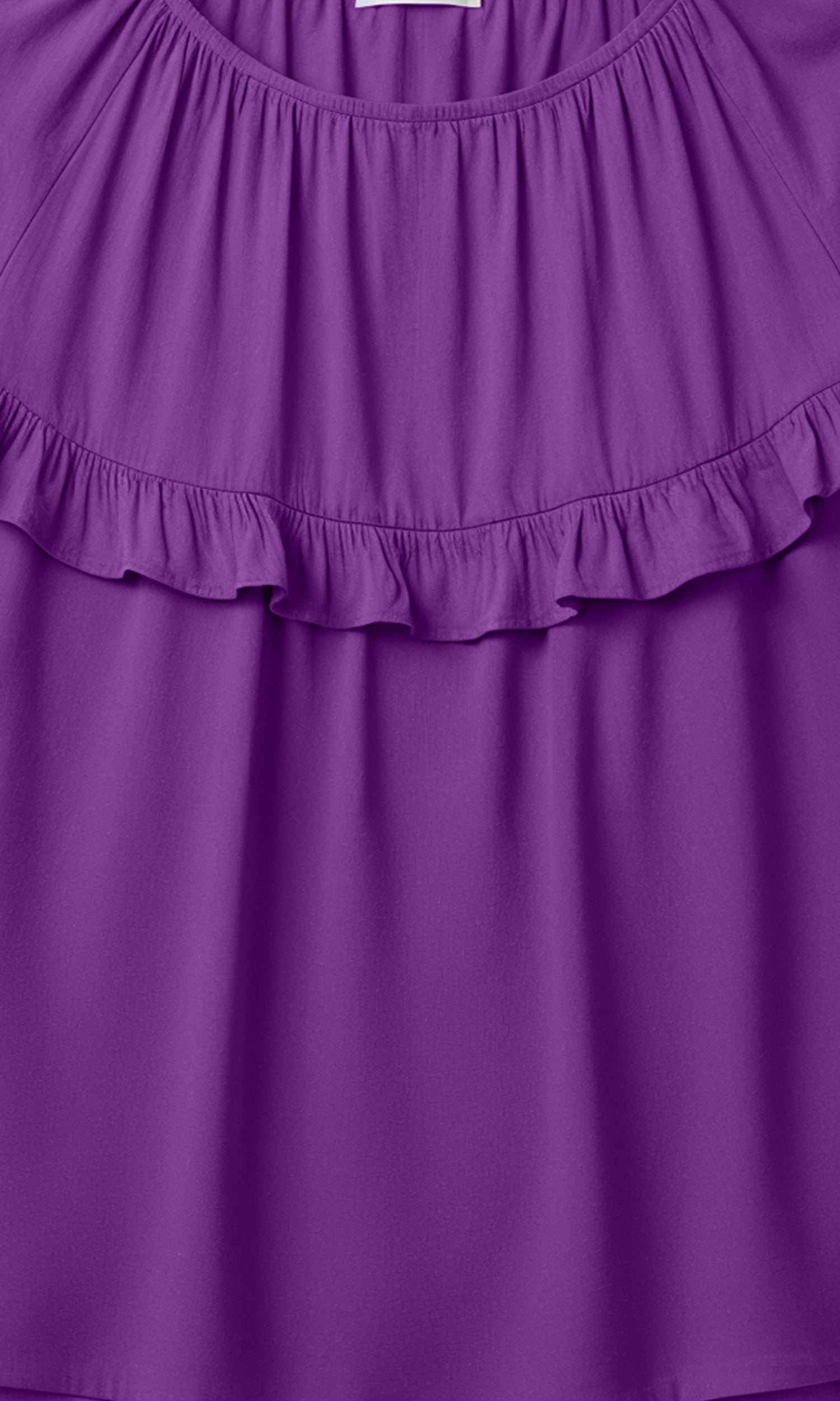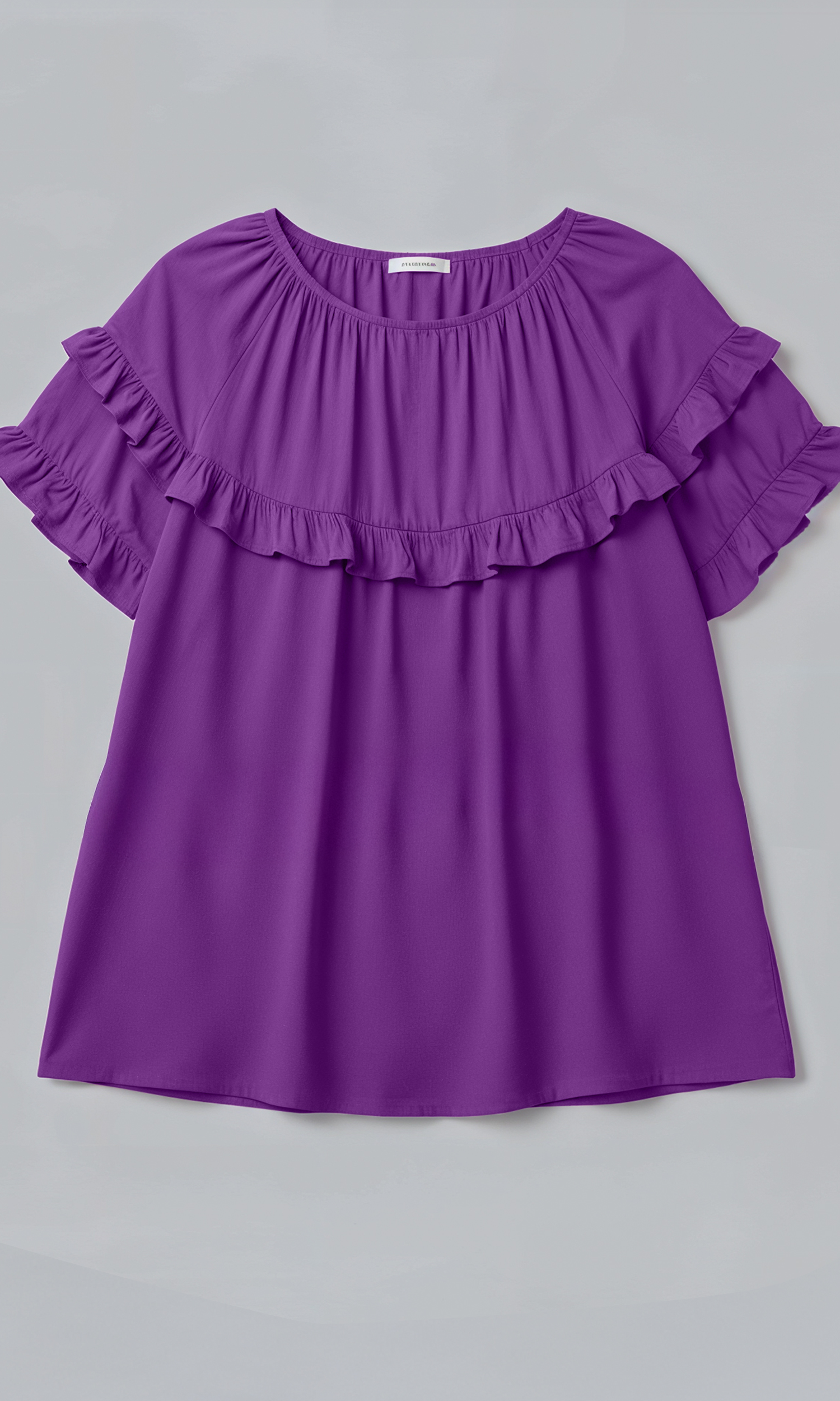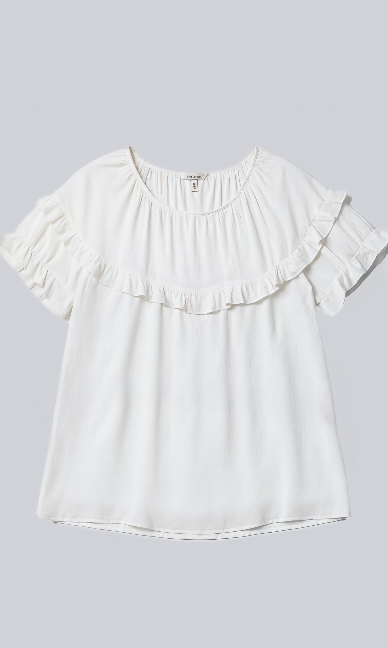 A softly draped T-shirt featuring a delicate ruffled neckline that flatters your shoulders without clinging.