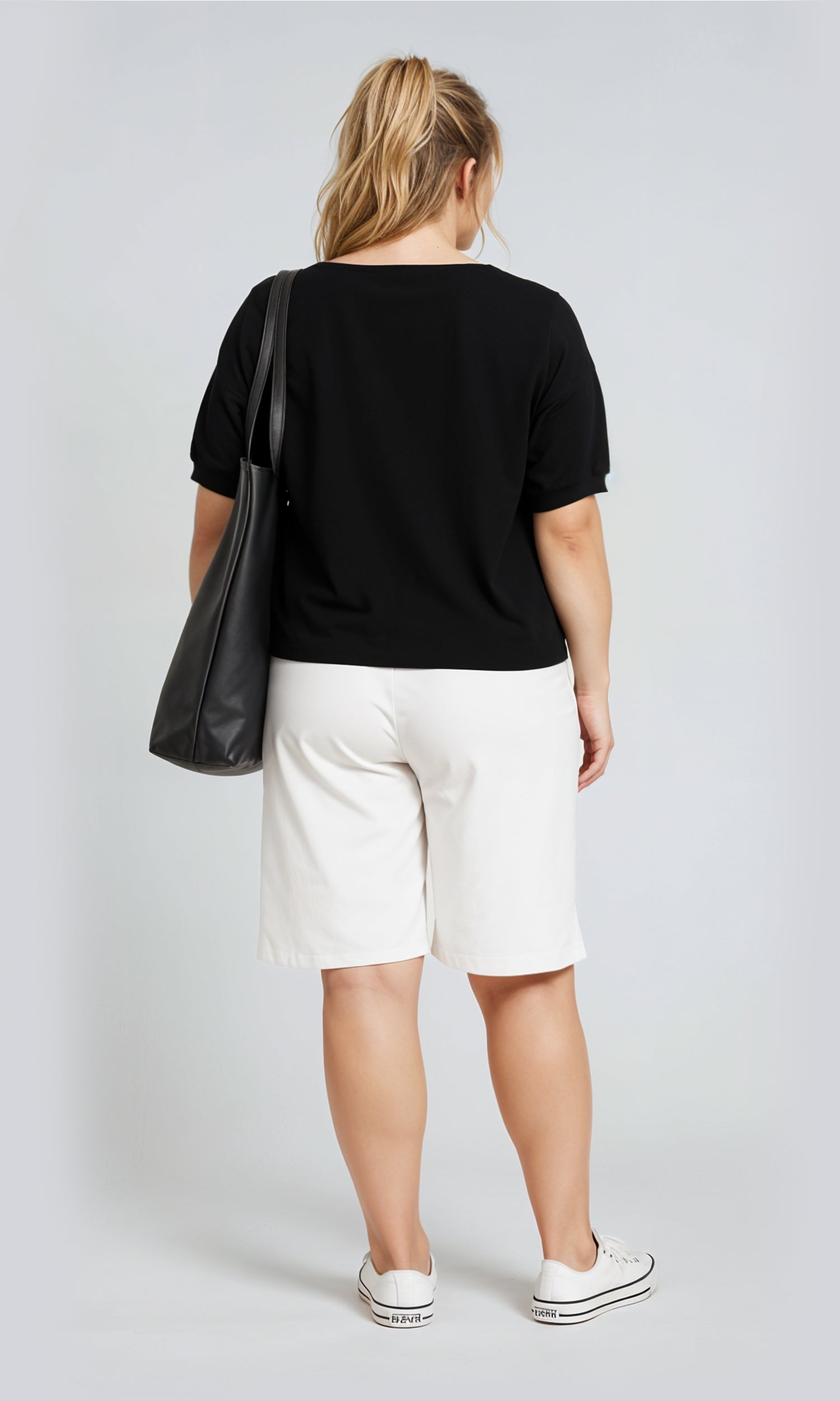 Designed for fuller women who want everyday comfort with a touch of polish, perfect for pairing with jeans, skirts, or wide-leg pants.