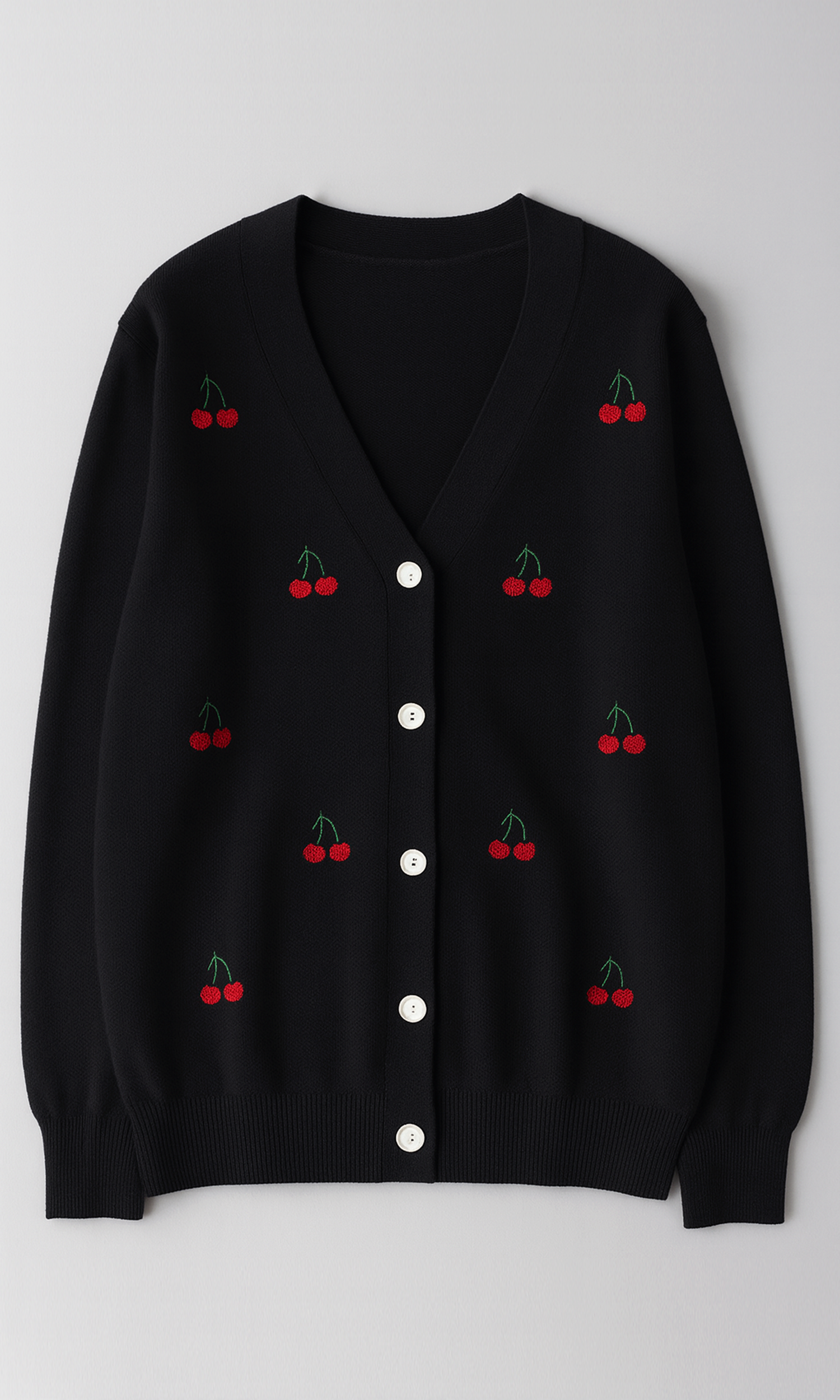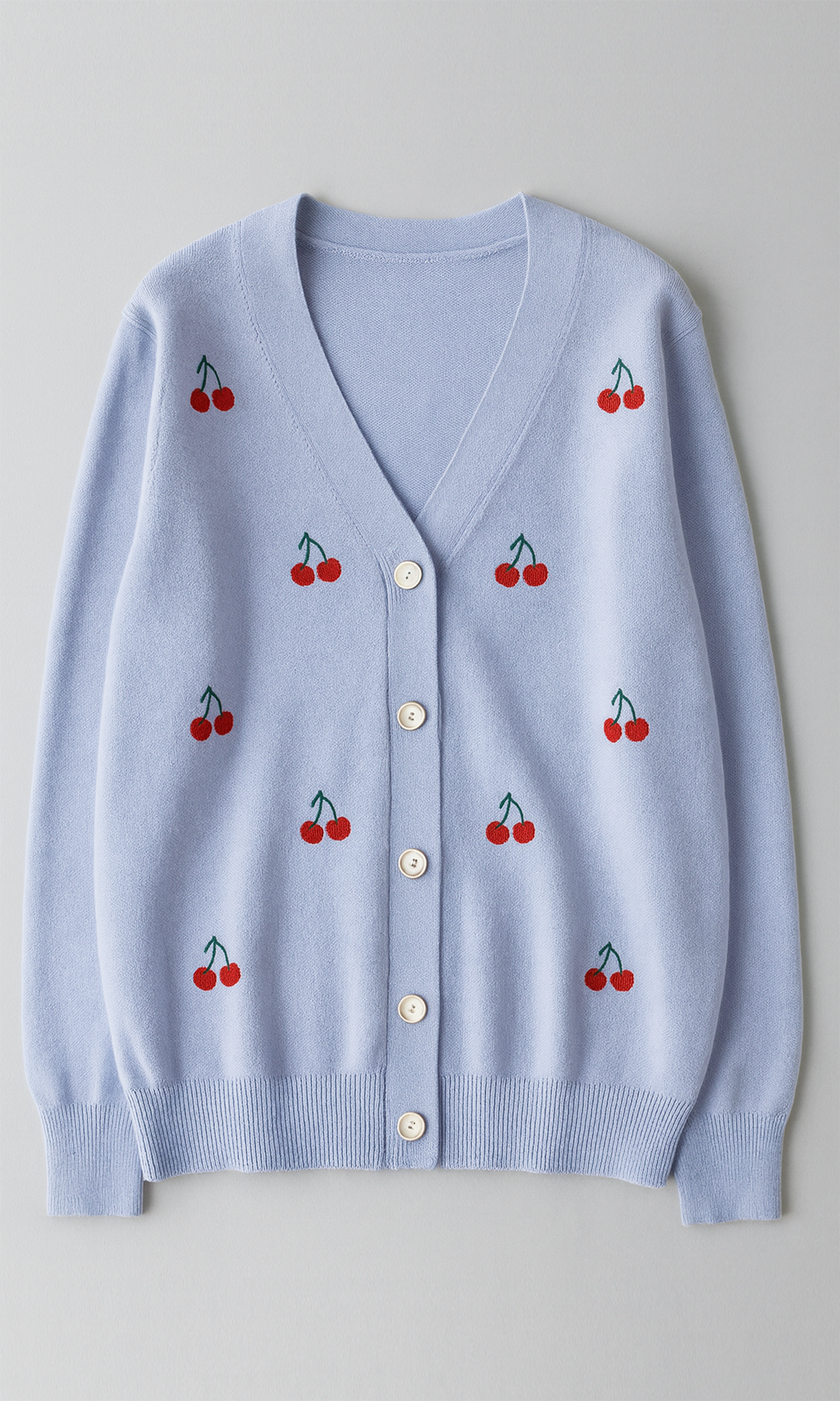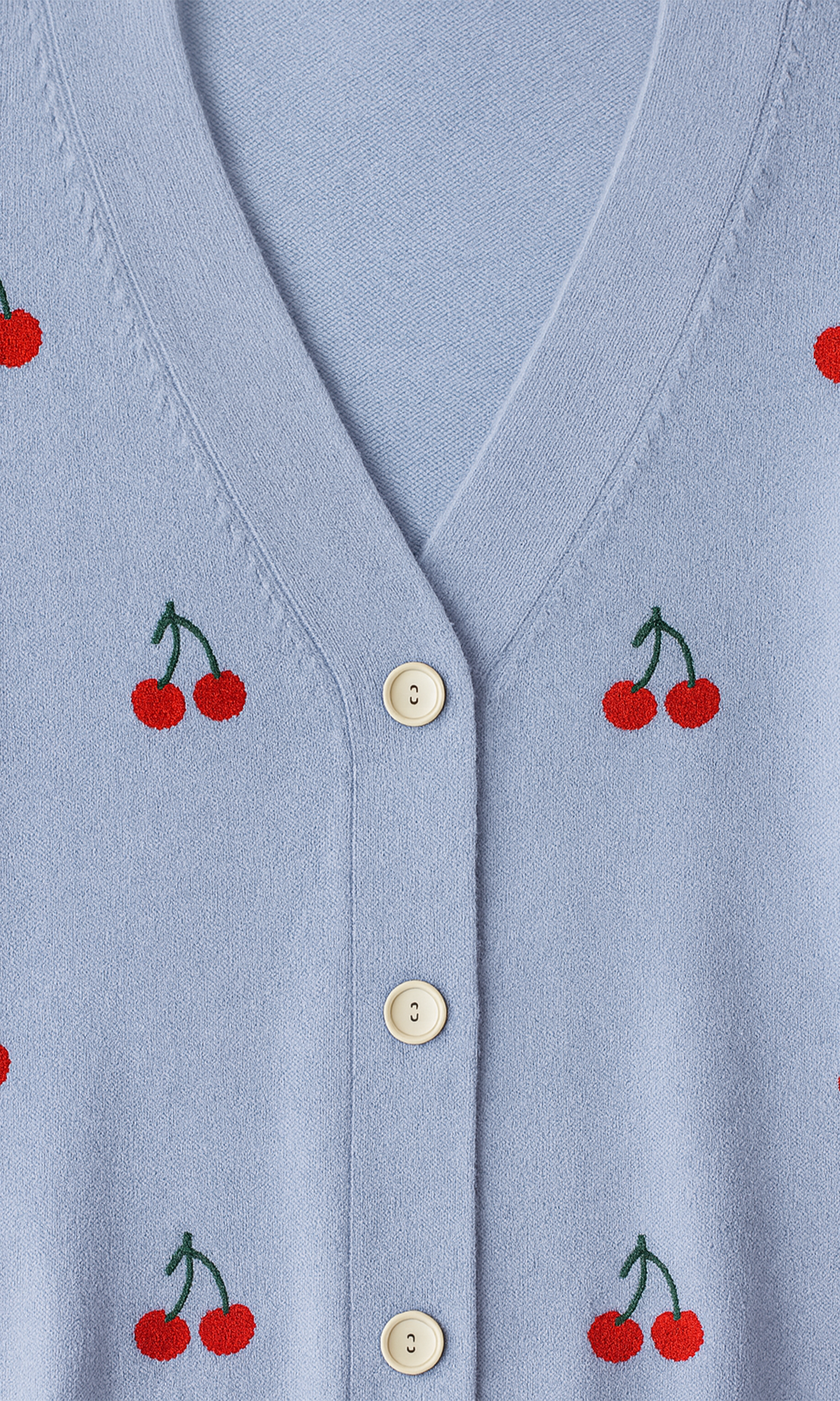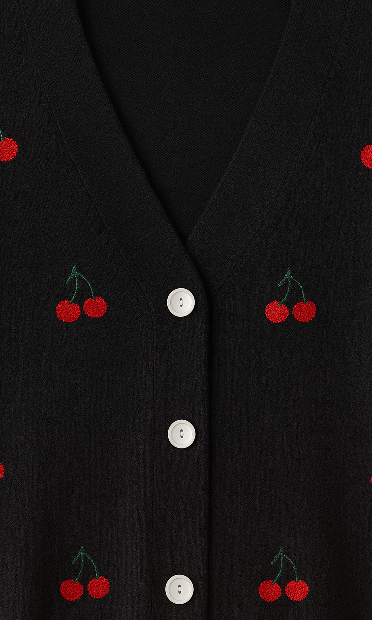 Embroidered cherry details bring a hint of sweetness, while the breathable knit keeps you comfortable all day long.