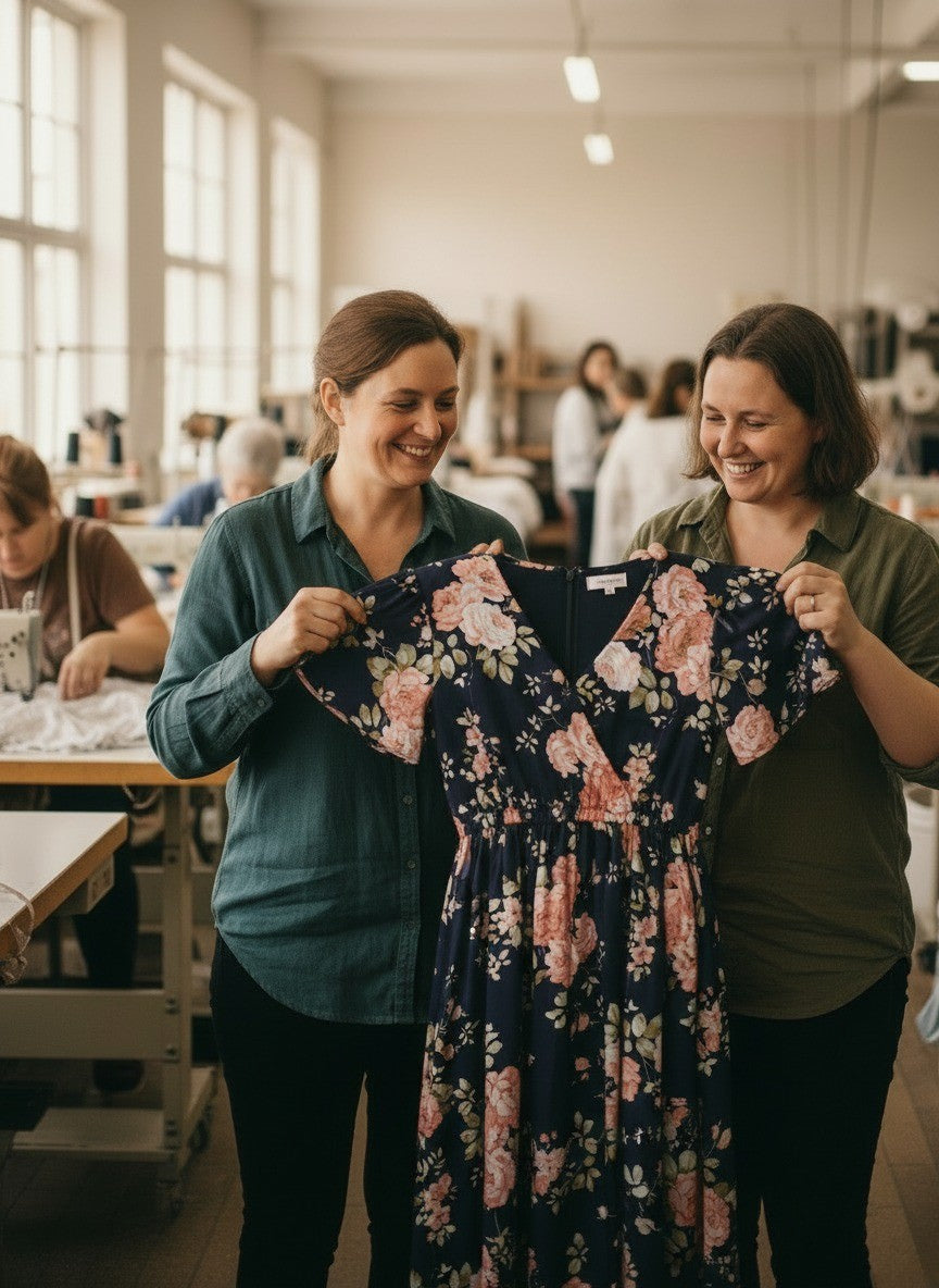 We don’t just make dresses. We design them to truly fit. Our team is obsessed with every detail, the flow over the tummy, the ease of the sleeves, the drape that flatters every curve. Each style is tested on real women in sizes 14 to 30, no shortcuts, no formulas, just real fit. And before a dress ever reaches you, it’s wear-tested to ensure comfort, confidence, and quality you can trust.