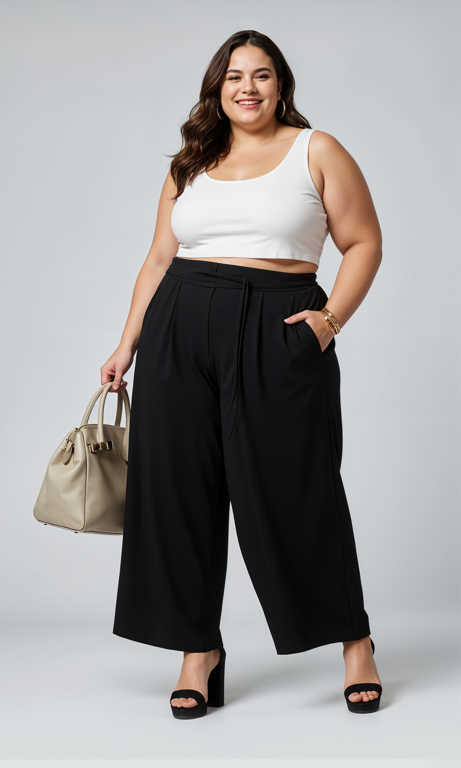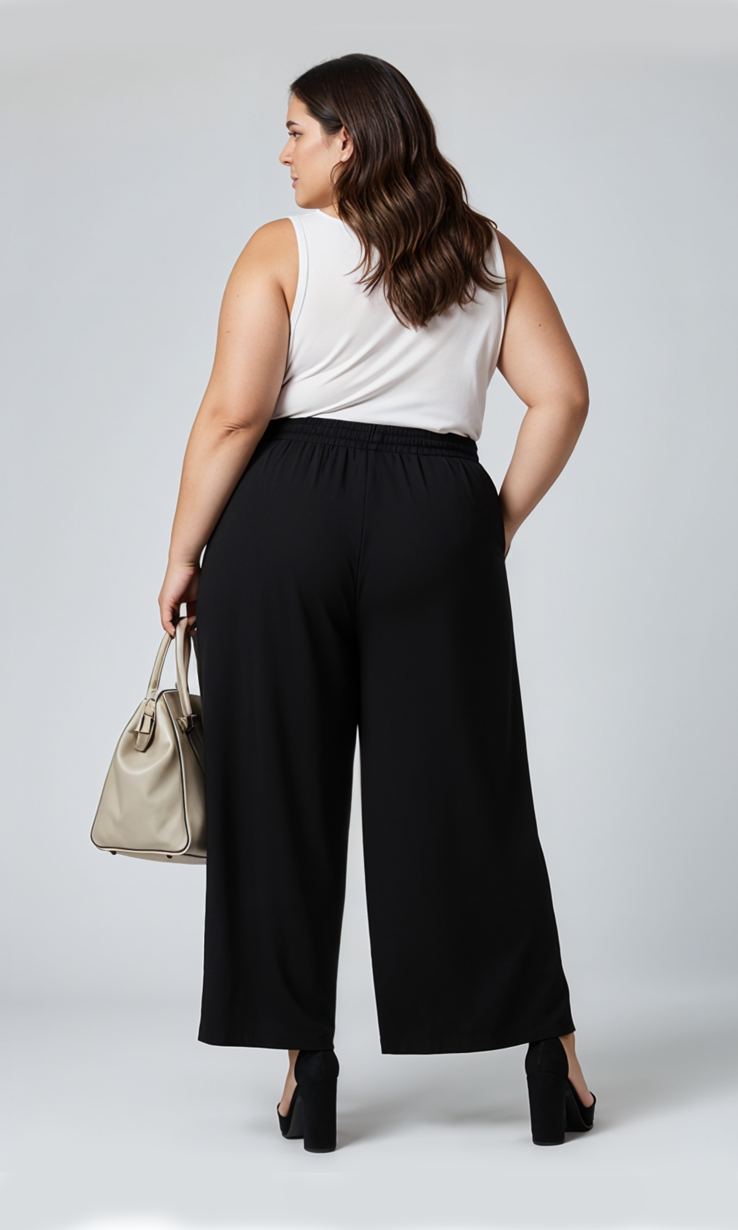 These wide-leg pants were designed to move with you, not against you. The smooth, lightweight fabric drapes beautifully over your legs, giving that effortless flow with every step. The gentle stretch around the waist provides all-day comfort, no pinching or digging. With a relaxed fit that flatters your curves and a drawstring detail for adjustability, these pants are your go-to for both style and softness.