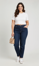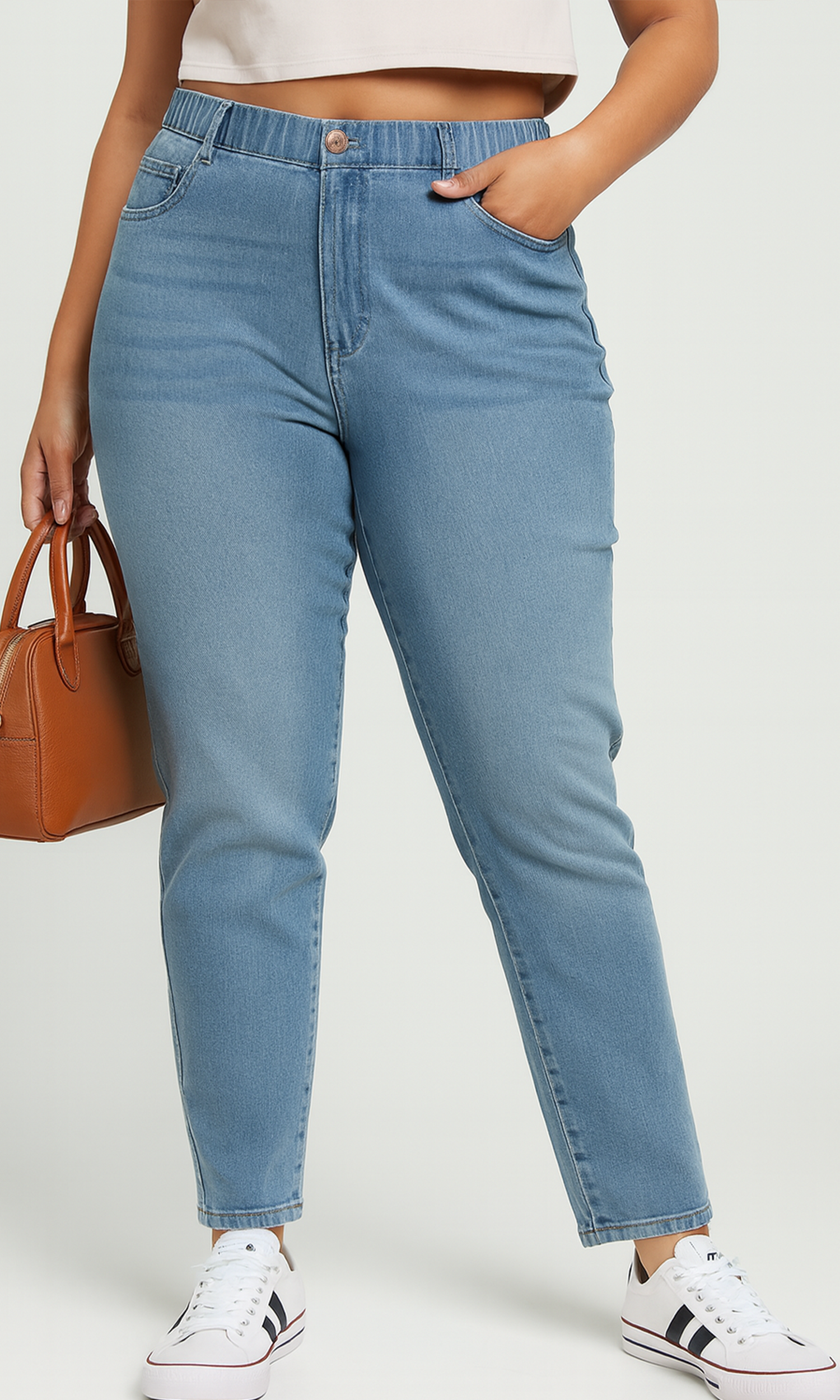 These jeans were designed with your comfort in mind. The soft, stretchy denim moves with your body instead of against it, giving gentle support around the tummy without feeling tight. The high waist and slim fit create a smooth, flattering line that looks polished yet relaxed.