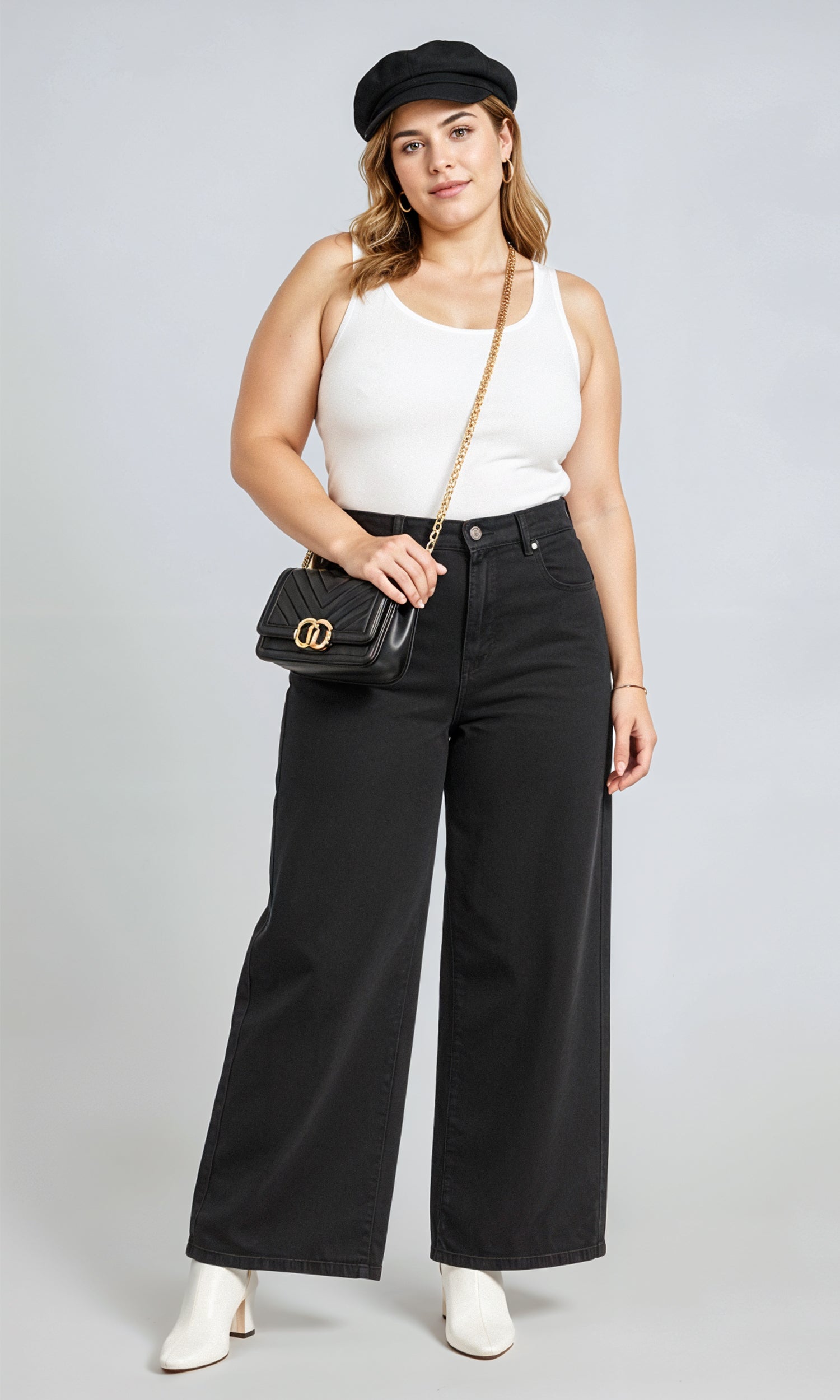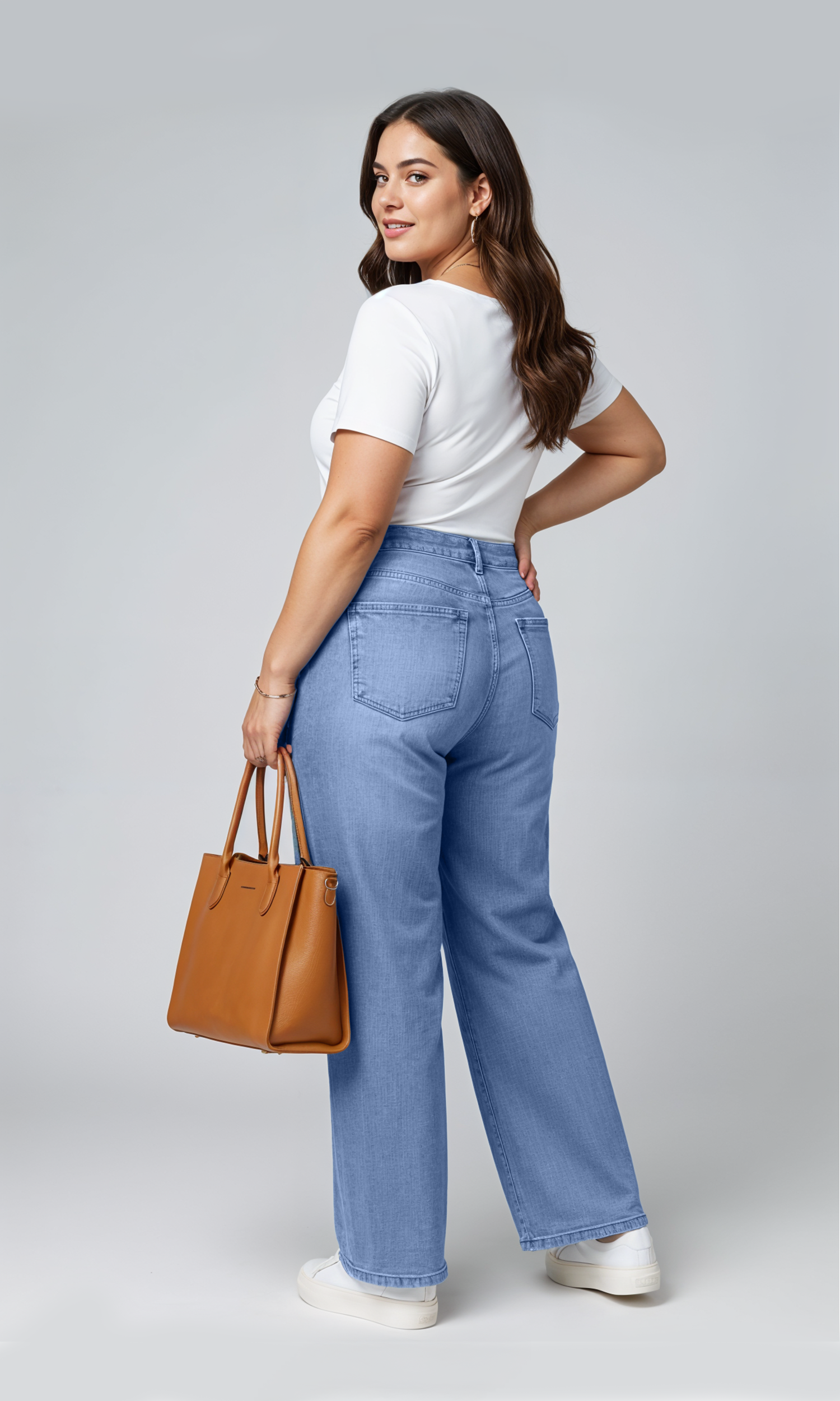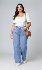 These wide leg jeans combine everyday comfort with a smooth, flattering shape. The soft cotton denim has a gentle stretch that moves with you, never clinging or feeling stiff. The stretchy waistband sits comfortably around your tummy, with no digging or tightness, just ease and flexibility.