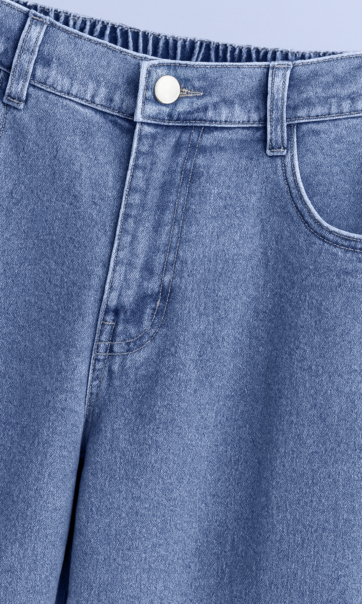 Machine wash cold with similar colors to protect the fiber texture and color depth. Avoid bleach and harsh detergents. Hang to dry to keep the denim’s natural softness and elasticity. Iron or steam on low if needed.